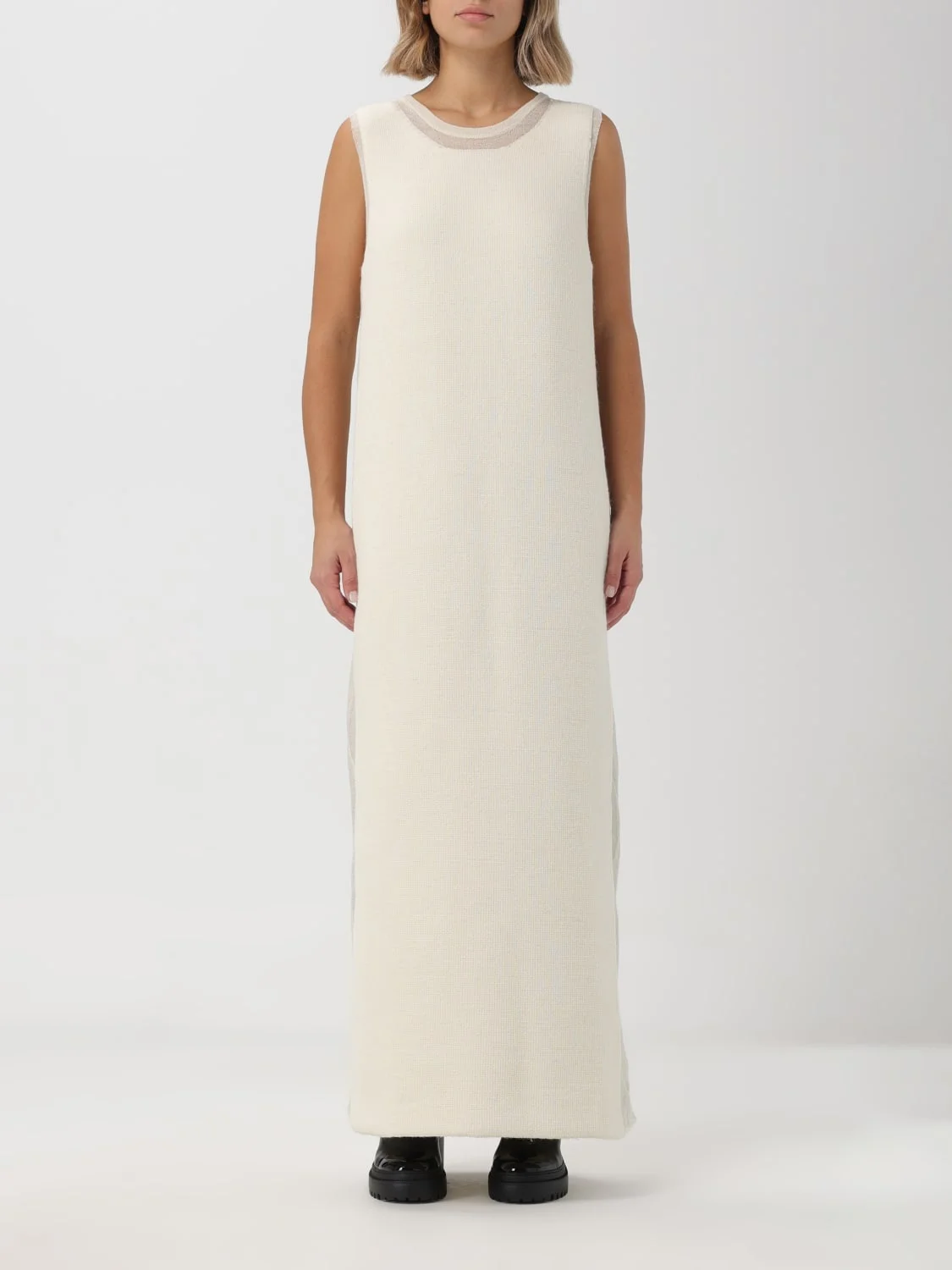DESCRIPTION - Style: Classic, Minimal - Neckline: Crewneck - Shoulders: Regular - Bottom: With straight hemline - Model: Knit - Length: Long dresses - Sleeves: Sleeveless dresses - Materials: Silk blend, Wool blend - Pattern: Plain-colored DETAILS AND CARE Composition 34% ALPACA 11% SILK 55% WOOL SIZE AND FIT Sizes not available Size and fit Regular fit Designer code: J03CT0222J14658 106 Giglio Code: E93457 Designer: Jil Sander Collection: Jil Sander Woman Category: Clothing Jil Sander