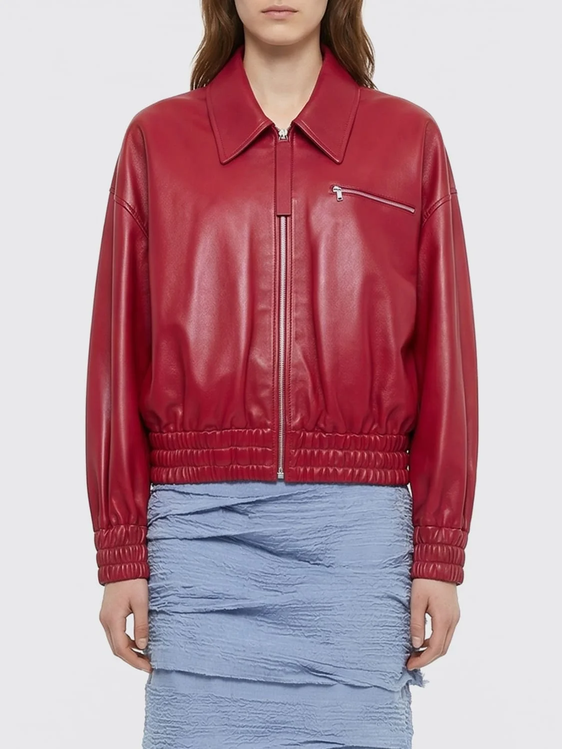 DESCRIPTION - Style: Rock, Urban-street - Neck: Classic - Shoulders: Regular - Sleeves: Long - Closure: With zip - Pockets: America - Bottom: Stretch, With straight hemline - Length: Short jackets - Materials: Smooth leather - Pattern: Plain-colored DETAILS AND CARE Composition _100%PVN SIZE AND FIT Sizes not available Size and fit Regular fit Designer code: J02SW0048J07187 618 Giglio Code: I18470 Designer: Jil Sander Collection: Clothing Jil Sander Category: Clothing > Jacket