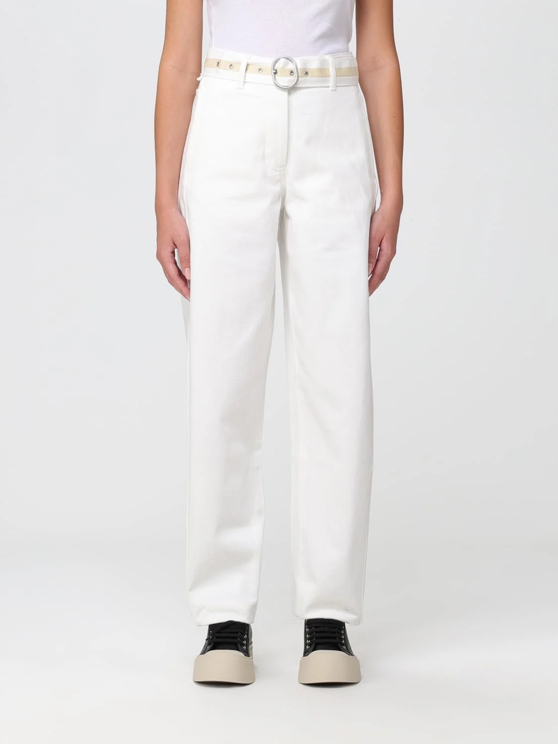 DESCRIPTION - Style: Casual, Urban-street - Pockets: America , Back patch pocket - Waist: High waist - Bottom: With straight hemline - Closure: With button and zip - Pattern: Plain-colored DETAILS AND CARE Composition 100% COTTON SIZE AND FIT Sizes not available Size and fit Regular fit, Straight Designer code: J40KA0137J46544 102 Giglio Code: E67432 Designer: Jil Sander Collection: Jil Sander Woman Category: Clothing Jil Sander
