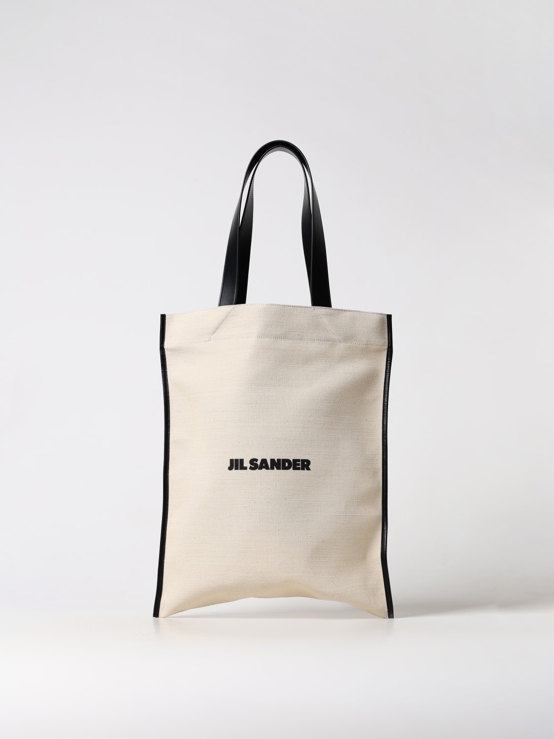 DESCRIPTION - Logo: Print - Lining: With patch pockets - Model: Shoulder , Tote - Shape: Rectangular - Handle: Double - Materials: Juta, Smooth calfskin - Pattern: All-over logo DETAILS AND CARE Composition 61% jute 39% cotton SIZE AND FIT Sizes Width : 40 cm Height: 49 cm Depth: 0,5 cm Handle height: 27,5 cm Designer code: J07WD0104P7060 280 Giglio Code: F79811 Designer: Jil Sander Collection: Jil Sander Woman Category: Bags Jil Sander