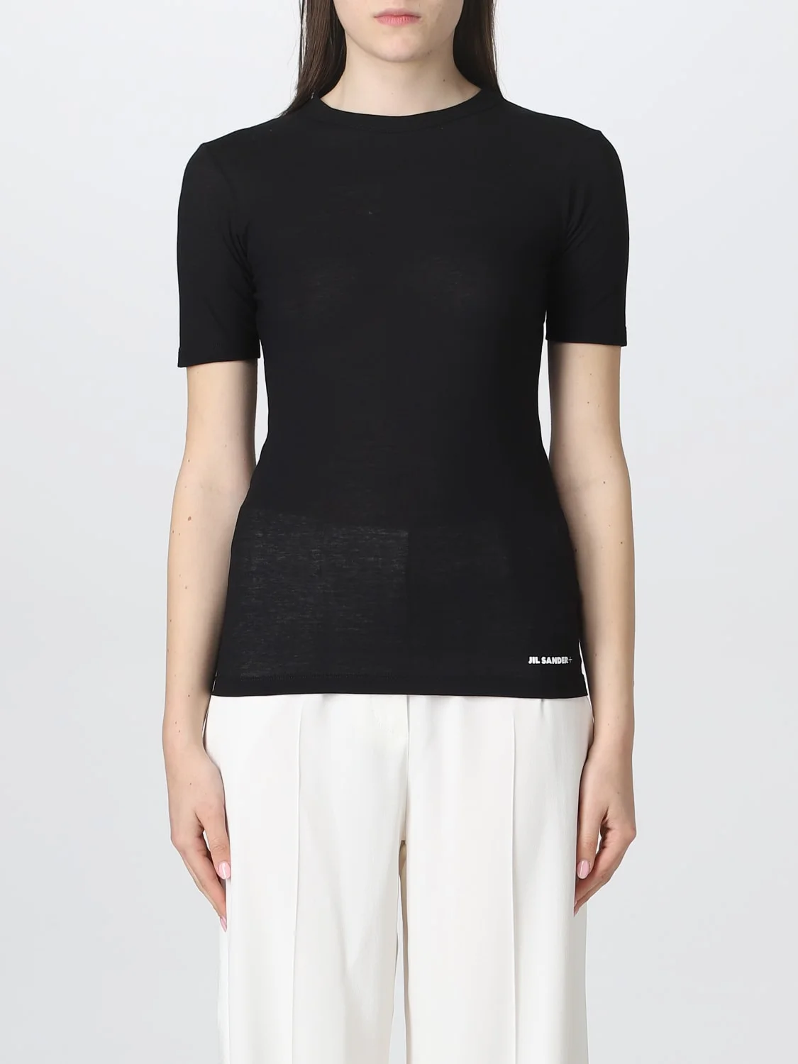 DESCRIPTION - Style: Basic - Logo: Contrasting - Model: Crewneck - Neckline: Crewneck - Shoulders: Regular - Sleeves: Short - Bottom: With straight hemline - Materials: Jersey - Pattern: Plain-colored DETAILS AND CARE Composition 100% COTTON Wash and Care Machine wash SIZE AND FIT Sizes not available Size and fit Slim fit Designer code: J40GC0005J45031 001 Giglio Code: E01012 Designer: Jil Sander Collection: Jil Sander Woman Category: Clothing Jil Sander