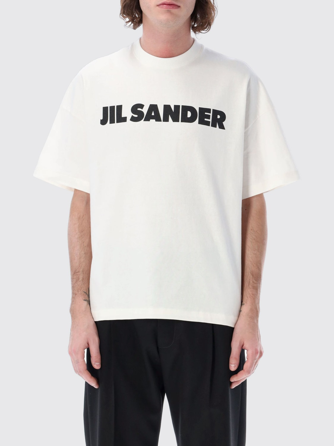 DESCRIPTION - Style: Urban-street - Logo: Contrasting - Neckline: Crewneck - Shoulders: Relaxed - Sleeves: Short - Bottom: With straight hemline - Materials: Cotton - Pattern: Logo DETAILS AND CARE Composition Cotton 100% SIZE AND FIT Sizes not available Size and fit Relaxed fit Designer code: J21GC0001J45148 102 Giglio Code: G50571 Designer: Jil Sander Collection: Jil Sander Men Category: Clothing Jil Sander