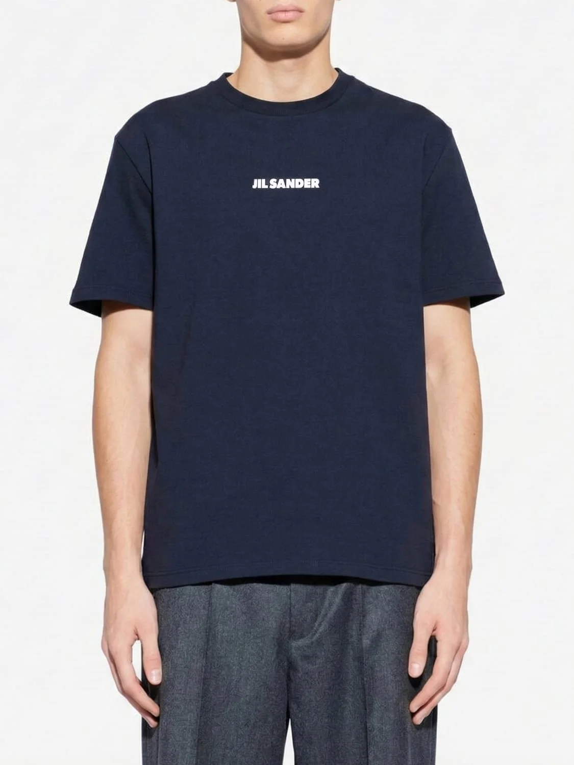 DESCRIPTION - Style: Contemporary - Logo: Contrasting - Model: Crewneck - Neckline: Crewneck - Shoulders: Regular - Sleeves: Short - Bottom: With straight hemline - Materials: Cotton - Pattern: Logo, Plain-colored DETAILS AND CARE Composition GENERAL COTTON 100 - SIZE AND FIT Sizes not available Size and fit Regular fit Designer code: J22GC0237J20103 401 Giglio Code: H80322 Designer: Jil Sander Collection: Jil Sander Men Category: Clothing Jil Sander