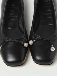 Elme Flat Black Nappa Leather Flats with Pearl Embellishment