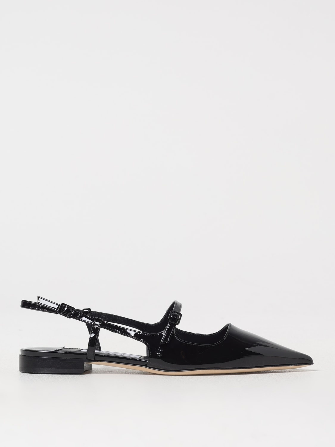 DESCRIPTION - Logo: Monogram, Tone-on-tone - Lining: Leather, With logo - Model: Slip on, Ballet flats - Closure: With adjustable strap - Toe: Almond - Heel: With adjustable strap - Sole: Leather - Materials: Patent leather - Pattern: Plain-colored DETAILS AND CARE Composition 91% LEATHER 5% SALPA 3% METAL 1% RUBBER SIZE AND FIT Sizes not available Designer code: DIDIFLATPAT BLACK Giglio Code: G54718 Designer: Jimmy Choo Collection: Jimmy Choo Woman Category: Shoes Jimmy Choo