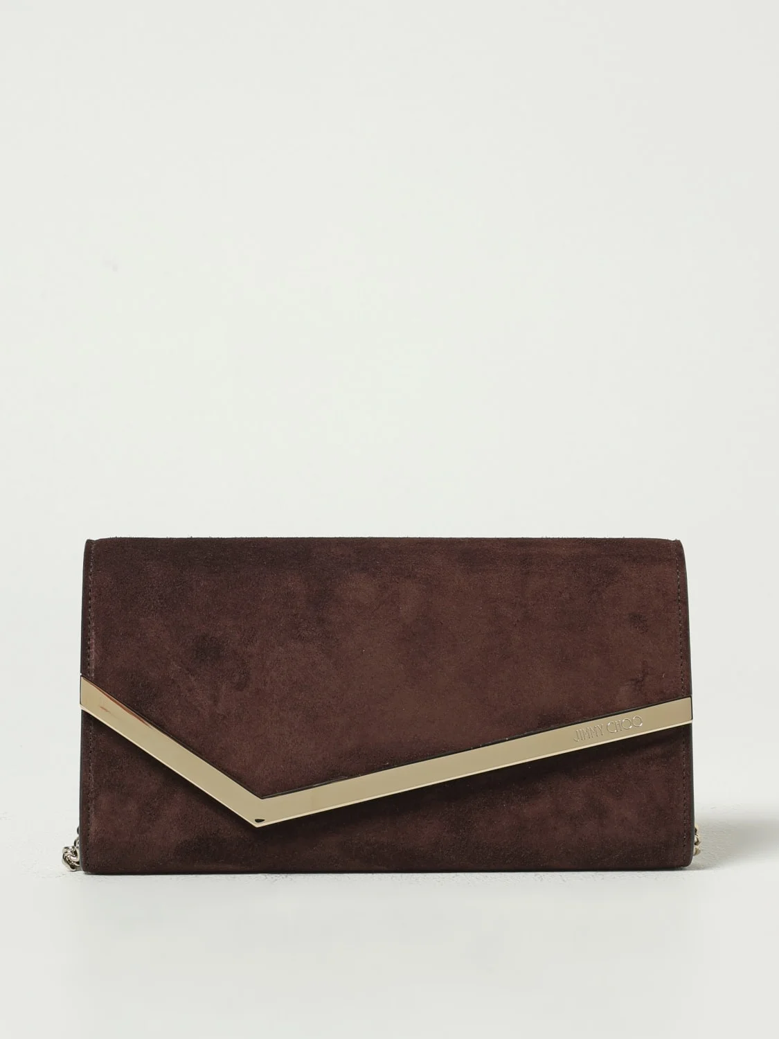 DESCRIPTION - Occasion: Evening and party - Logo: Lettering - Lining: With imprinted logo - Model: Hand - Shape: Rectangular - Shoulder strap: Metal mesh - Measurements: Shoulder strap length from shoulder: 60 cm - Closure: With flap and magnetic buttons - Materials: Suede calfskin - Pattern: Plain-colored DETAILS AND CARE Composition not available SIZE AND FIT Sizes Width : 22 cm Height: 12 cm Depth: 3 cm Designer code: EMMIESUE CH0C0L.G0L Giglio Code: H19141 Designer: Jimmy Choo Collection: Jimmy Choo Woman Category: Bags Jimmy Choo