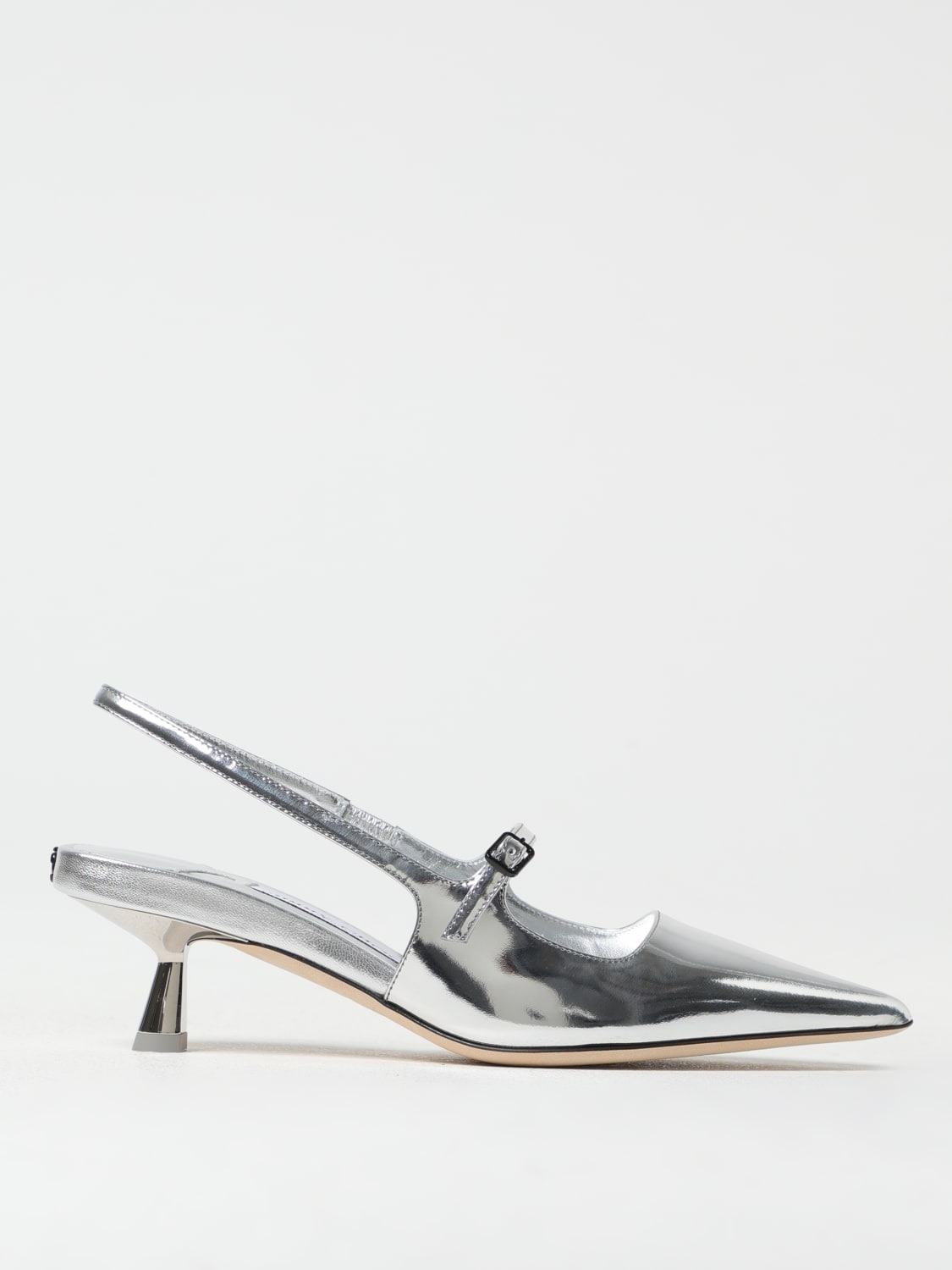 DESCRIPTION - Style: Rock - Model: Slingback - Closure: With belt with metal buckle - Toe: Tapered - Sole: Leather - Heel: With stretch strap , undefined - Materials: Laminated leather - Pattern: Plain-colored DETAILS AND CARE Composition A punta Cinturino con dettaglio elastico Cint SIZE AND FIT Sizes Heel: 4,5 cm Designer code: DIDI45QUI SILVER Giglio Code: G53832 Designer: Jimmy Choo Collection: Jimmy Choo Woman Category: Shoes Jimmy Choo