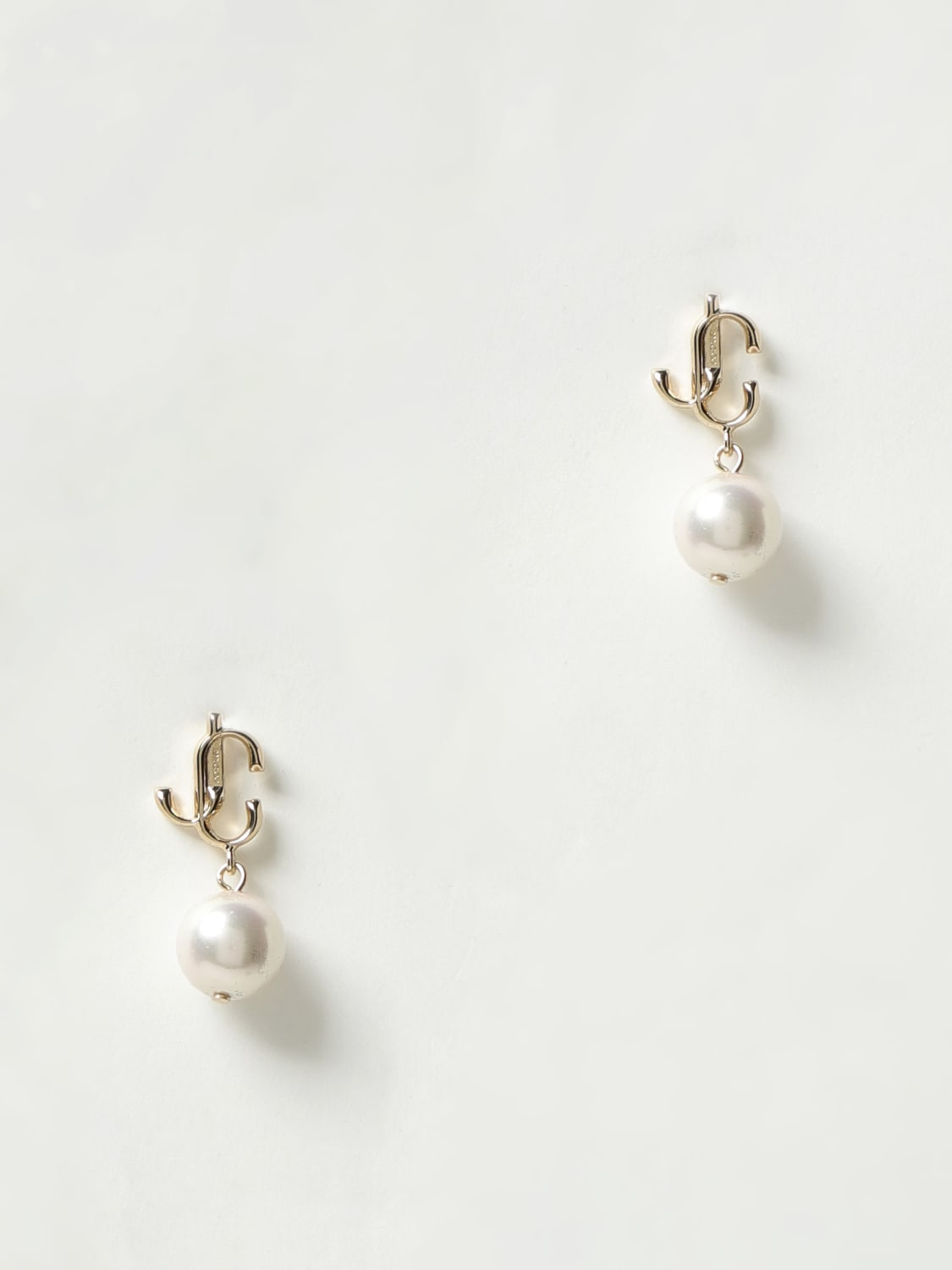 DESCRIPTION - Logo: Monogram - Model: Pendant - Closure: Butterfly - Details: Synthetic pearls - Materials: Synthetic pearls - Pattern: Monogram DETAILS AND CARE Composition _80% BRASS 20% PC SIZE AND FIT Sizes not available Designer code: JCPEARLEARRINGSDXQ 0C9456 Giglio Code: H19766 Designer: Jimmy Choo Collection: Jimmy Choo Woman Category: Accessories Jimmy Choo