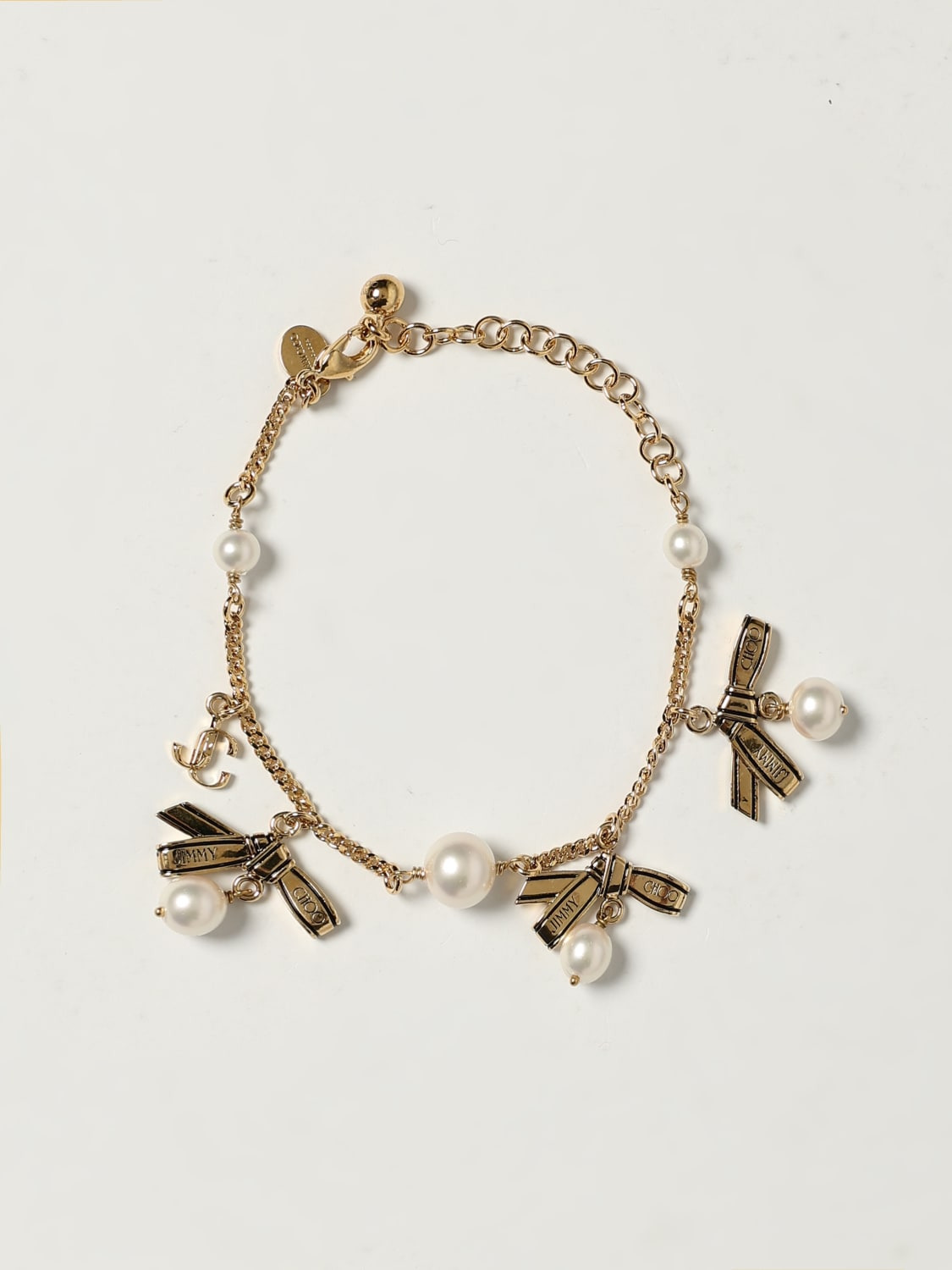 DESCRIPTION - Logo: Lettering - Details: Synthetic pearls - Model: Adjustable - Closure: With snap-hook - Materials: Synthetic pearls - Pattern: undefined DETAILS AND CARE Composition 100% brass 100% resina SIZE AND FIT Sizes not available Designer code: MULTICHRMRBNBRCLTJKI GOLD/BLACK/WHITE Giglio Code: H21300 Designer: Jimmy Choo Collection: Jimmy Choo Woman Category: Accessories Jimmy Choo