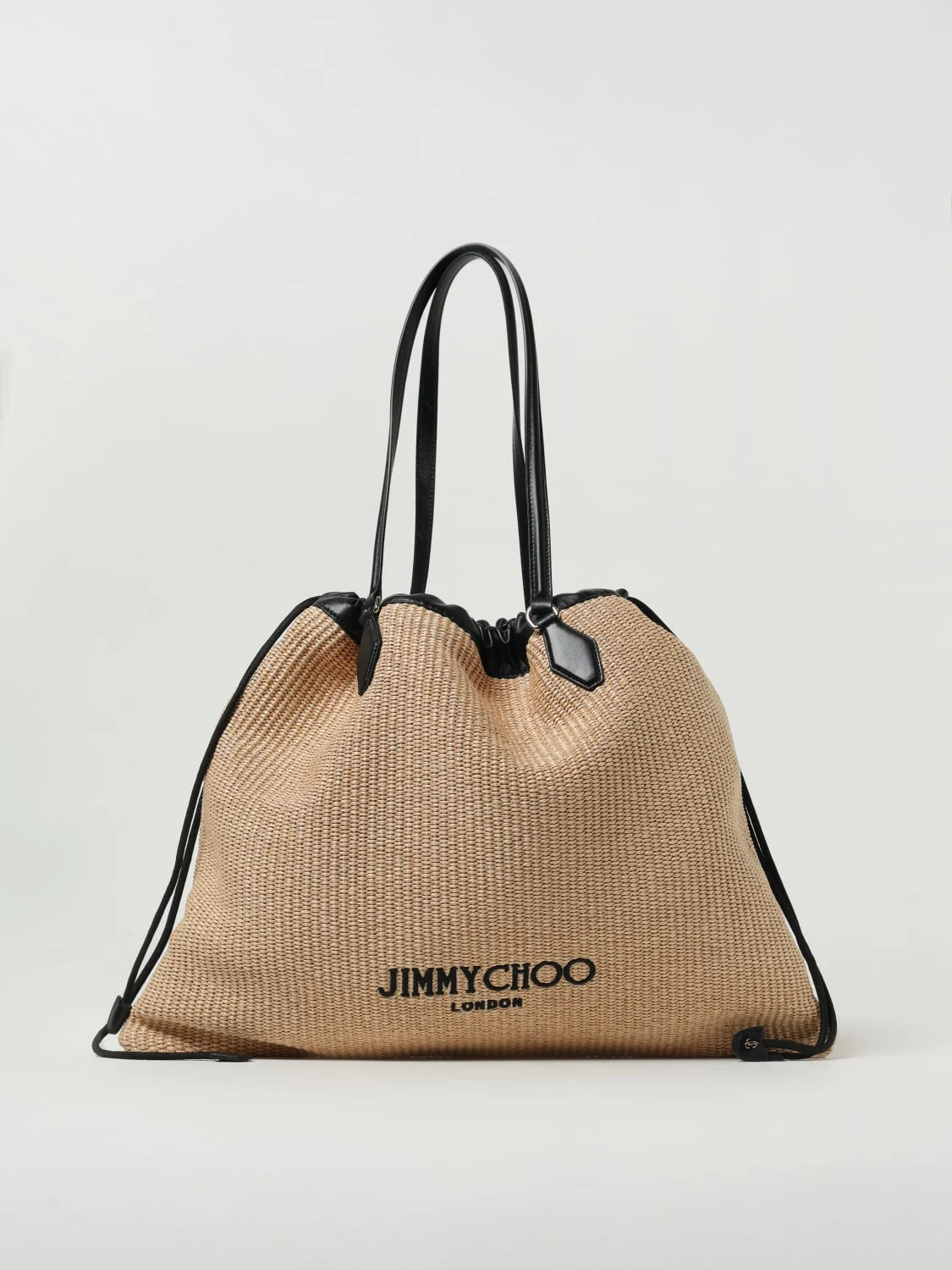 Drawstring Tote L Natural Soft Raffia Tote with Smooth Calf Leather with Jimmy Choo Logo