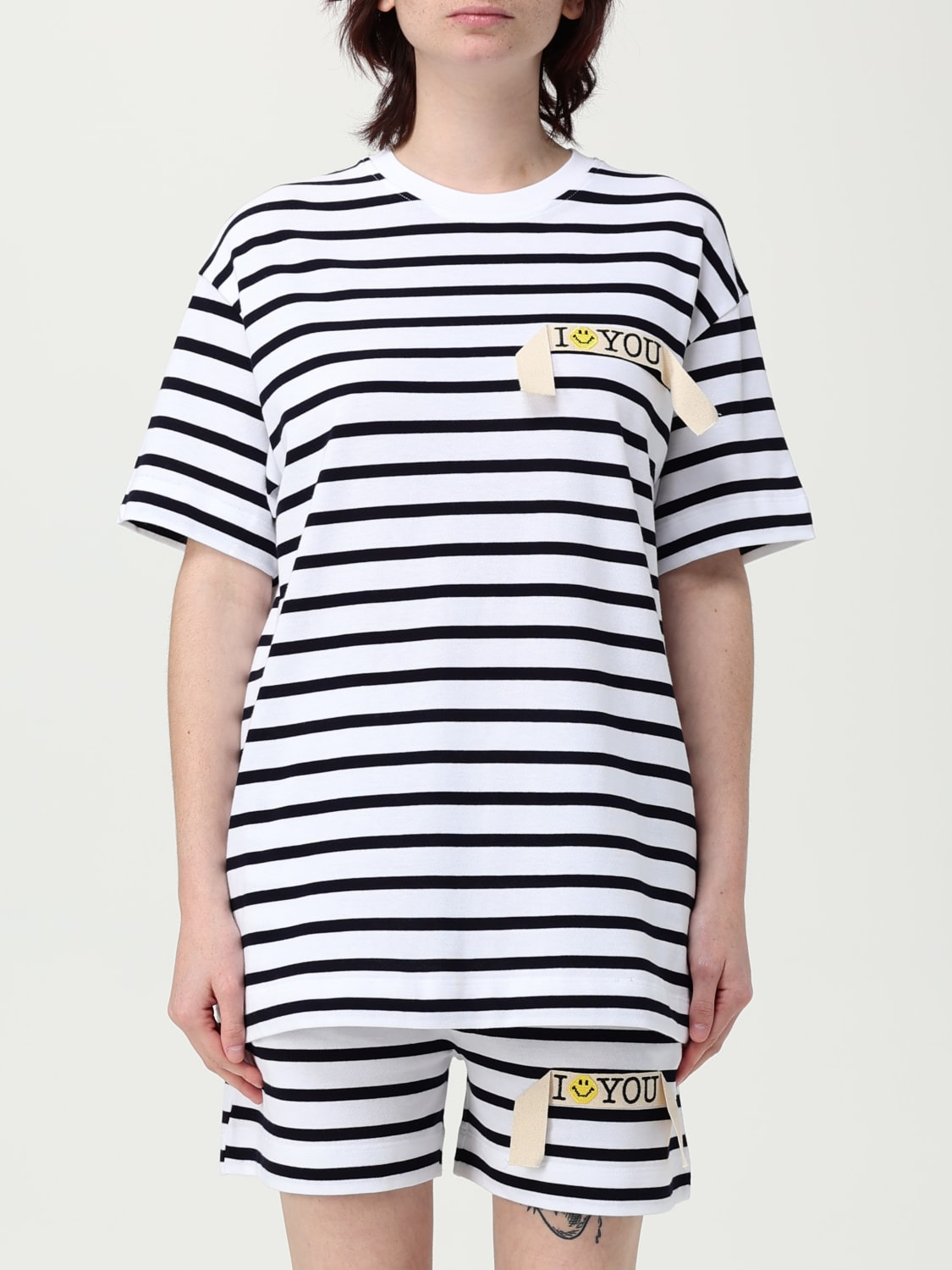 DESCRIPTION - Style: Contemporary, Sporty - Model: Crewneck - Neckline: Crewneck - Shoulders: Relaxed - Sleeves: Short - Bottom: With straight hemline - Logo: With logo - Materials: Cotton - Pattern: Two-tone stripes DETAILS AND CARE Composition 100% CO SIZE AND FIT Sizes not available Size and fit Regular fit Designer code: JS35A15108 BU Giglio Code: H01999 Designer: Joshua Sanders Collection: Joshua Sanders Woman Category: Clothing Joshua Sanders