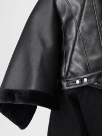 DESCRIPTION - Style: Rock, Underground - Model: Biker - Neck: Classic - Shoulders: Regular - Sleeves: Long - Closure: With buttons - Pockets: Patch pocket with flap and button - Length: Short jackets - Materials: Synthetic leather - Pattern: Plain-colored DETAILS AND CARE Composition 50% NYLON 50% POLYURETHANE SIZE AND FIT Sizes not available Size and fit Relaxed fit Designer code: JPJ201051 1 Giglio Code: H65341 Designer: Junya Watanabe Collection: Junya Watanabe Woman Category: Clothing Junya Watanabe