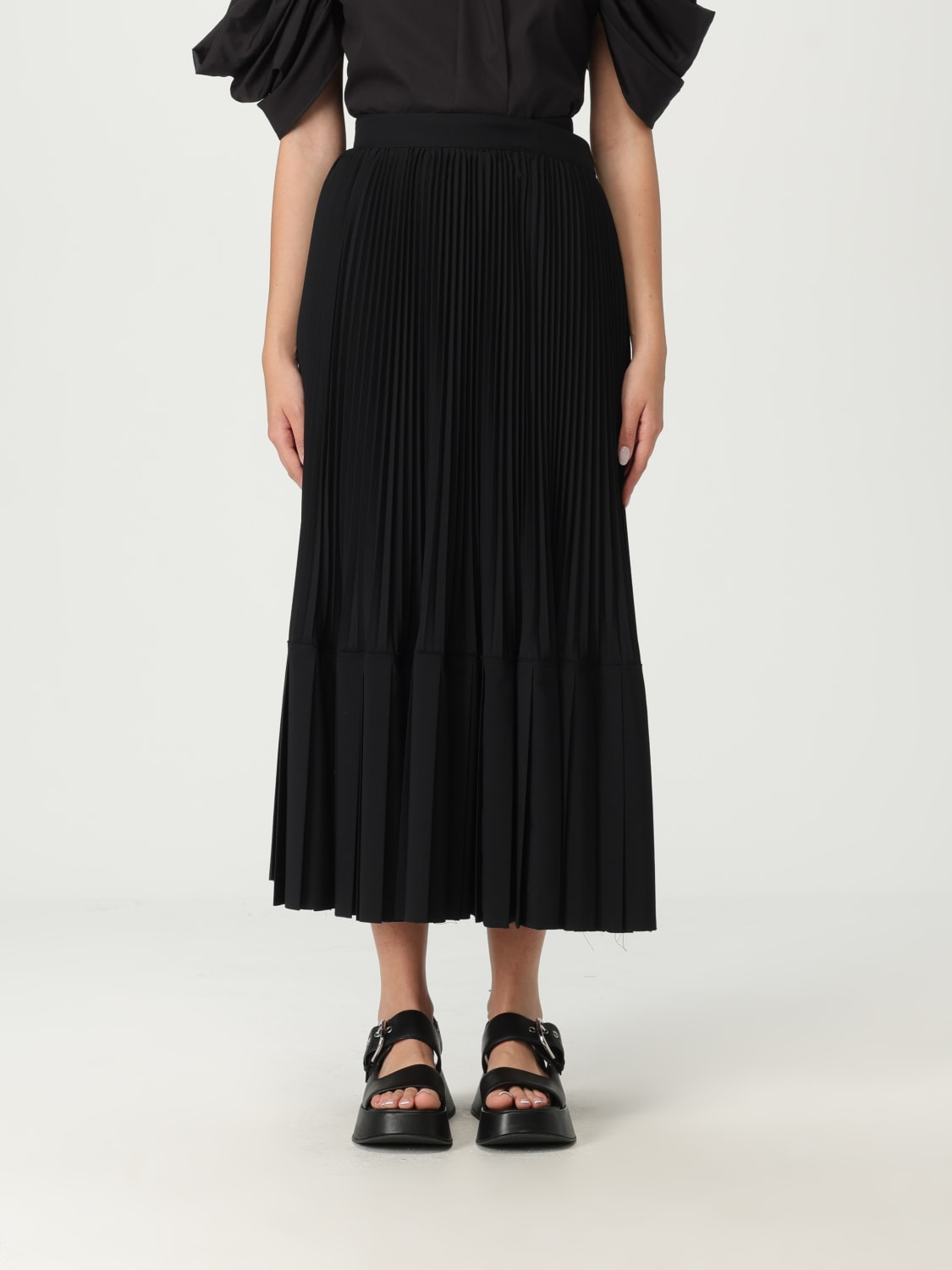 DESCRIPTION - Style: Minimal - Model: Pleated - Closure: Side closure with buckle - Waist: High - Bottom: With straight hemline - Length: Long skirts - Materials: Wool blend - Pattern: undefined DETAILS AND CARE Composition 50% WOOL 50% POLYESTER SIZE AND FIT Sizes not available Size and fit Regular fit Designer code: JOS015051 1 Giglio Code: G89759 Designer: Junya Watanabe Collection: Junya Watanabe Woman Category: Clothing Junya Watanabe