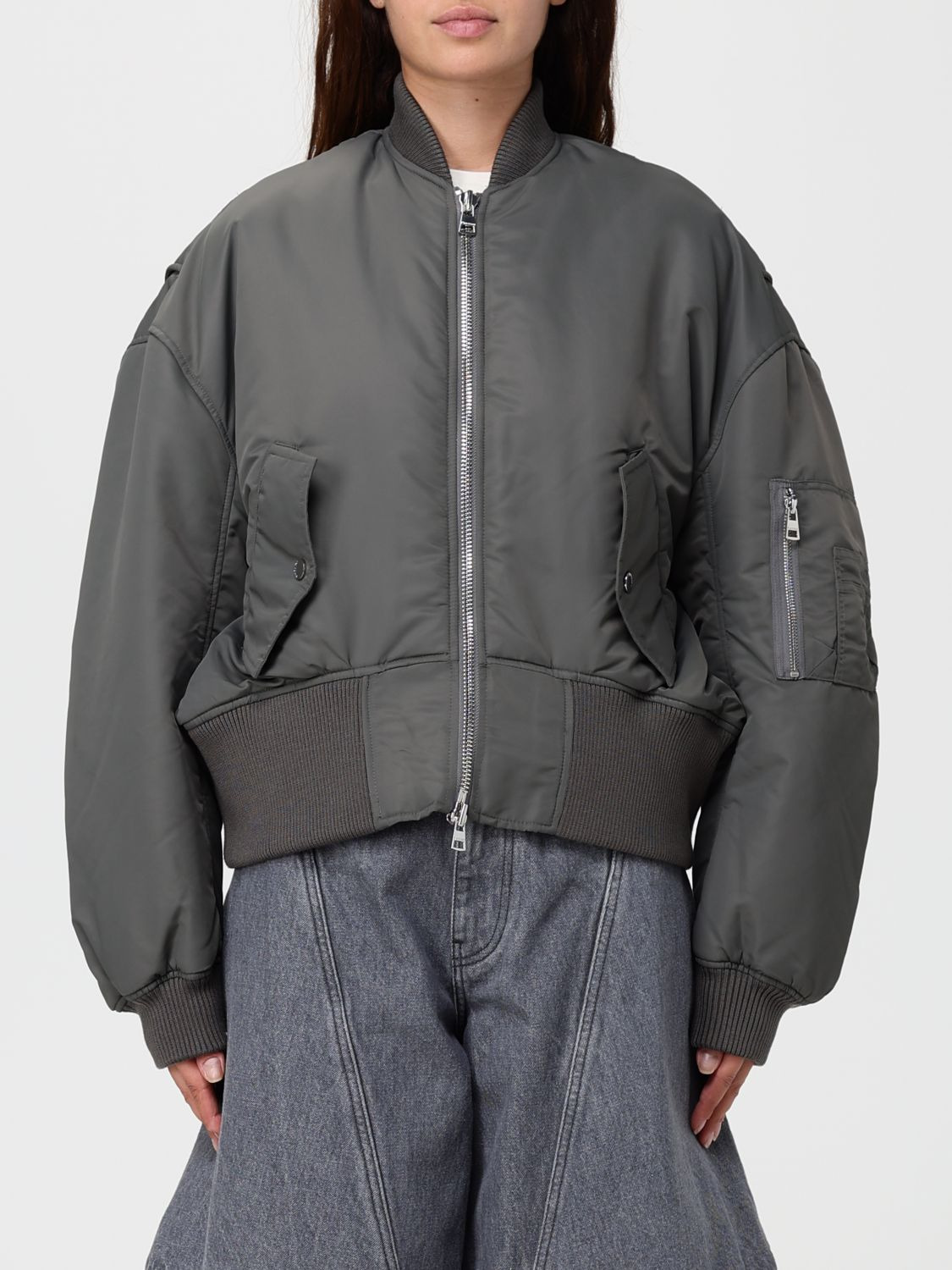 zip-fastening bomber jacket