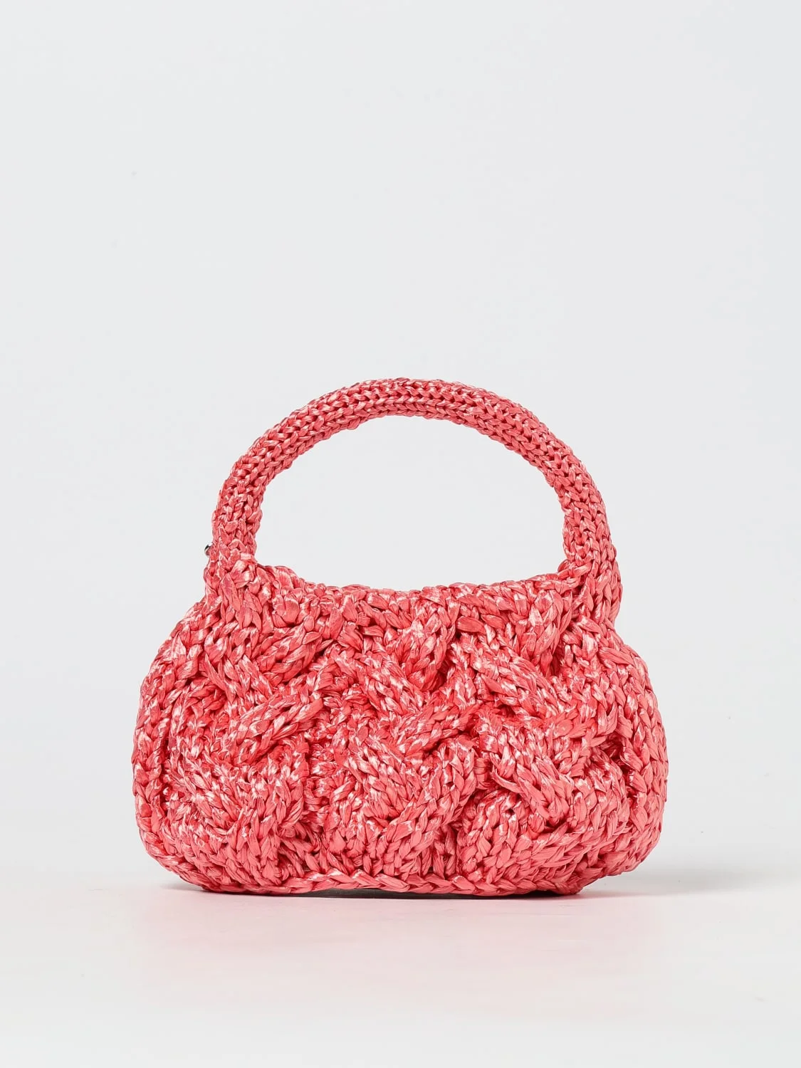 SMALL CABLE KNIT BAG - RAFFIA TOP HANDLE BAG