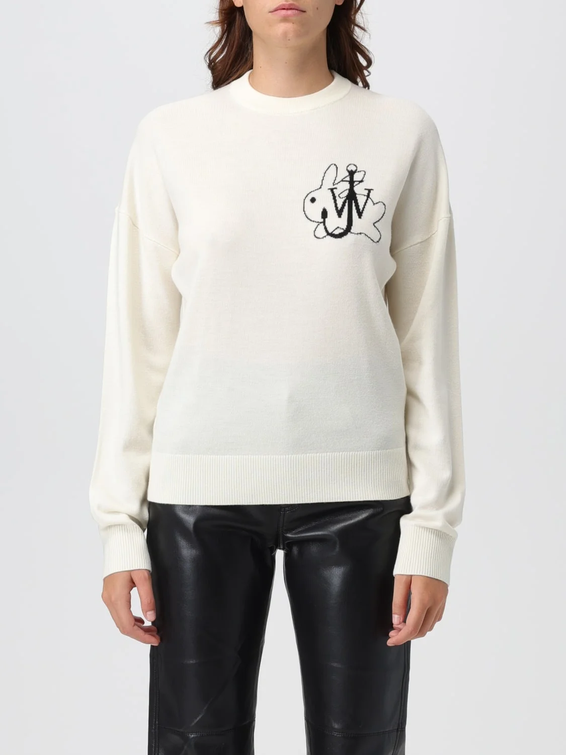 DESCRIPTION - Style: College, Contemporary - Model: Crewneck - Neckline: Crewneck - Shoulders: Relaxed - Sleeves: Long - Cuffs: Ribbed - Bottom: With ribbed edges - Logo: JW monogram - Materials: Merino wool - Pattern: Monogram DETAILS AND CARE Composition 100% MERINO EXTRAFINE WOOL SIZE AND FIT Sizes not available Size and fit Relaxed fit Designer code: KW1003YN0008 002 Giglio Code: E58797 Designer: Jw Anderson Collection: Jw Anderson Woman Category: Clothing Jw Anderson