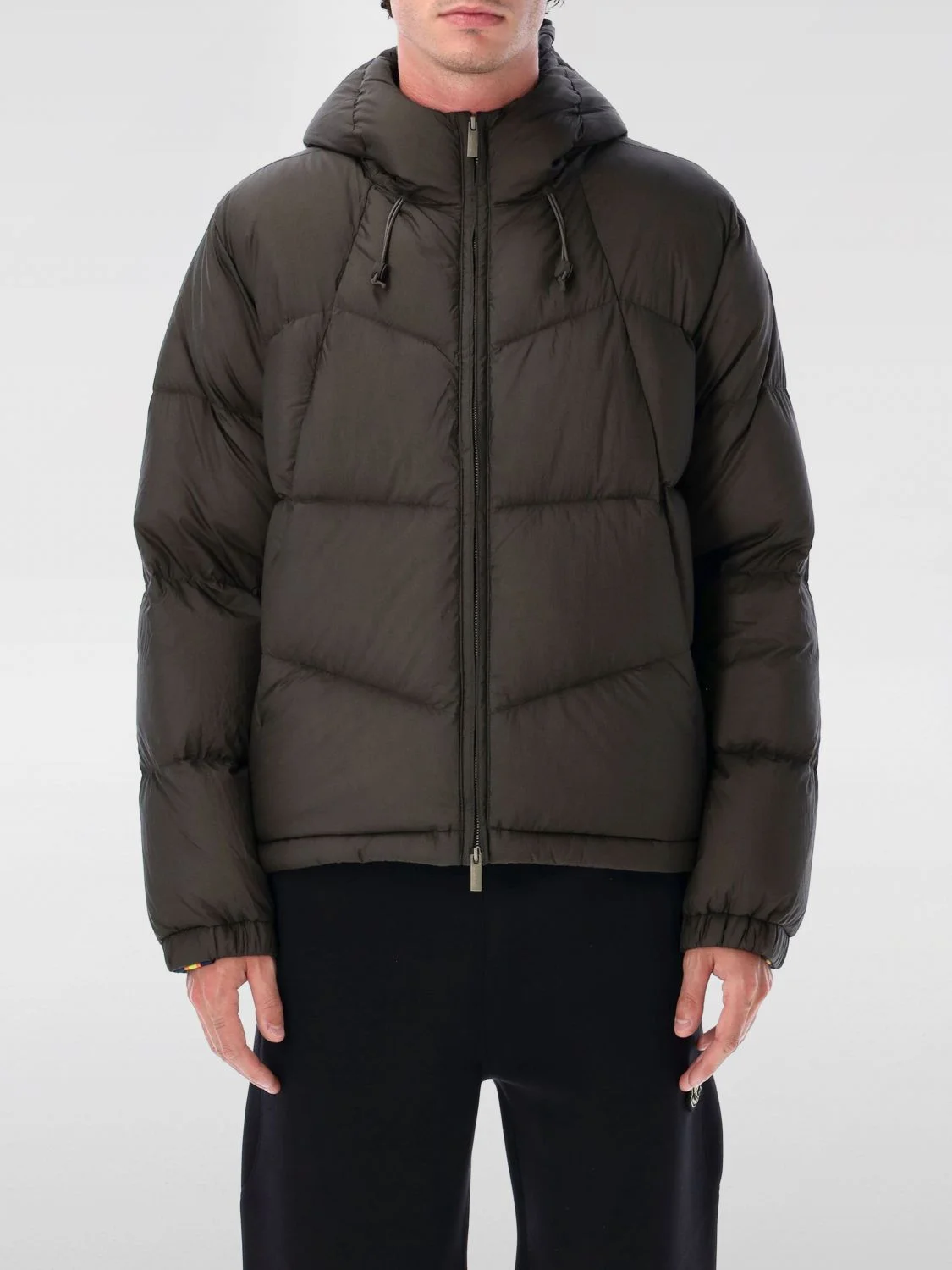 DESCRIPTION - Style: Sporty - Technical performances: Waterproof - Model: Padded - Neck: High - Hood: With drawstrings - Shoulders: Regular - Sleeves: Long - Cuffs: Stretch - Closure: With zip - Bottom: With straight hemline - Length: Short jackets - Lining: Feather - Materials: Ripstop nylon - Pattern: Plain-colored DETAILS AND CARE Composition not available SIZE AND FIT Sizes not available Size and fit Regular fit Designer code: K7136GW B38 Giglio Code: H36263 Designer: K-Way Collection: K-Way Men Category: Clothing K-Way