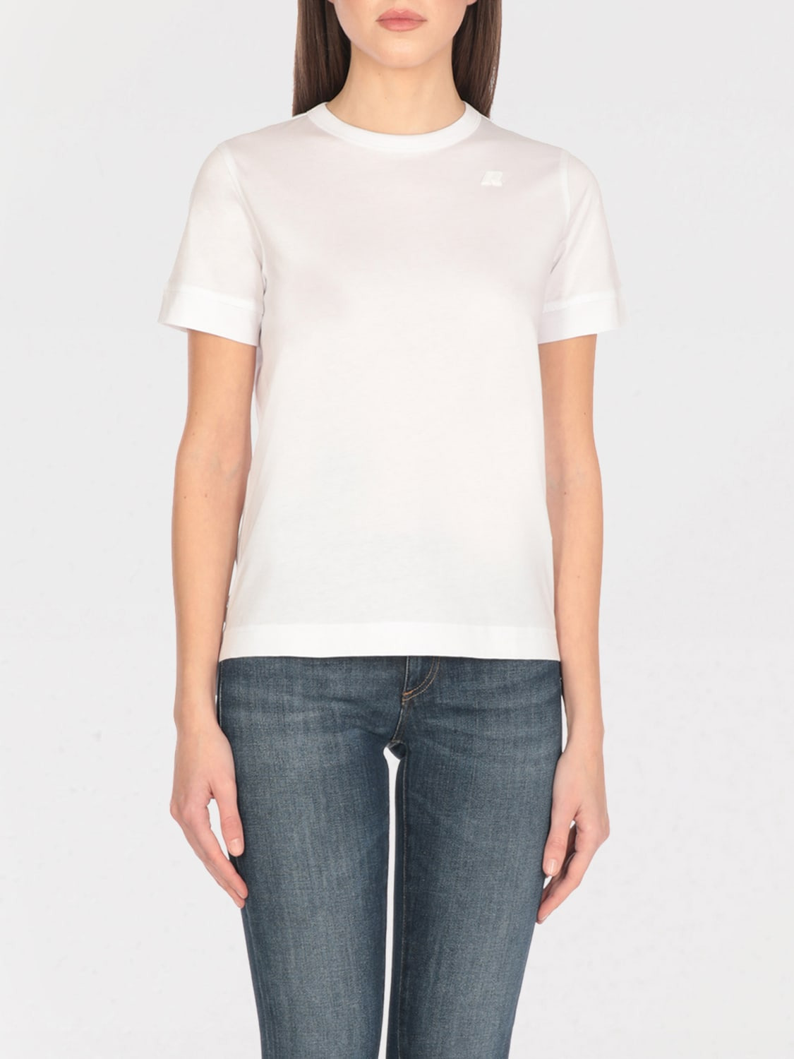 DESCRIPTION - Style: Minimal - Neckline: Crewneck - Shoulders: Regular - Sleeves: Short - Bottom: With straight hemline - Materials: Cotton - Pattern: Plain-colored DETAILS AND CARE Composition not available SIZE AND FIT Sizes not available Size and fit Regular fit Designer code: K2122UW 001 Giglio Code: H00945 Designer: K-Way Collection: K-Way Woman Category: Clothing K-Way