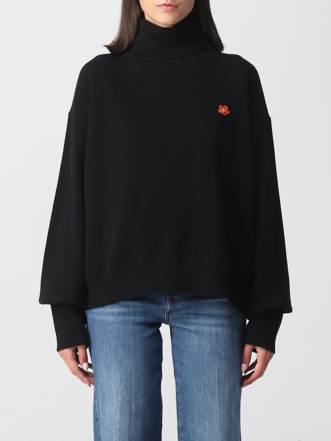 DESCRIPTION - Style: Urban-street - Logo: Embroidered - Neck: Turtleneck - Shoulders: Relaxed - Sleeves: Long - Bottom: With straight hemline - Materials: Wool - Pattern: Logo DETAILS AND CARE Composition 100WOOL SIZE AND FIT Sizes not available Size and fit Relaxed fit Designer code: FD62PU4323LC 99J Giglio Code: 393748 Designer: Kenzo Collection: Kenzo Woman Category: Clothing Kenzo