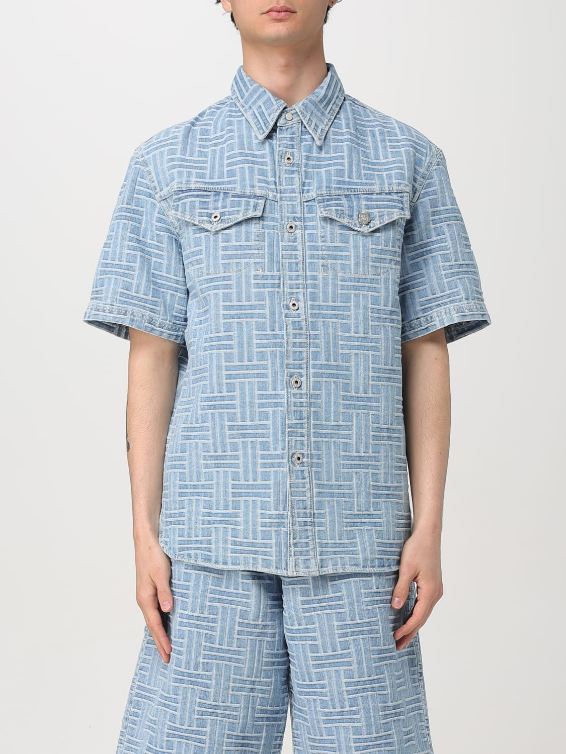 DESCRIPTION - Style: Urban-street - Neck: French - Shoulders: Relaxed - Closure: With buttons - Bottom: With curved hemline - Pockets: Flap with button - Sleeves: Short sleeve shirts - Materials: Denim - Pattern: Graphic DETAILS AND CARE Composition 100% Cotton SIZE AND FIT Sizes not available Size and fit Relaxed fit Designer code: FF55DC1026J4 DB Giglio Code: G68511 Designer: Kenzo Collection: Kenzo Men Category: Clothing Kenzo