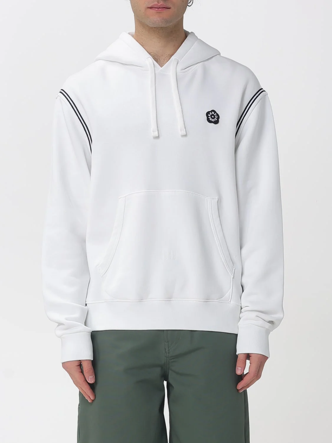 DESCRIPTION - Style: Casual - Logo: Contrasting - Hood: With drawstrings - Shoulders: Relaxed - Sleeves: Long - Cuffs: Stretch - Pockets: Kangaroo pocket - Bottom: Stretch, With straight hemline - Occasion: Morning - Model: With hood - Materials: Cotton - Pattern: Logo, Plain-colored DETAILS AND CARE Composition not available SIZE AND FIT Sizes not available Size and fit Regular fit Designer code: FG55HO5024MJ 02 Giglio Code: H96686 Designer: Kenzo Collection: Clothing Kenzo Category: Clothing > Sweatshirt