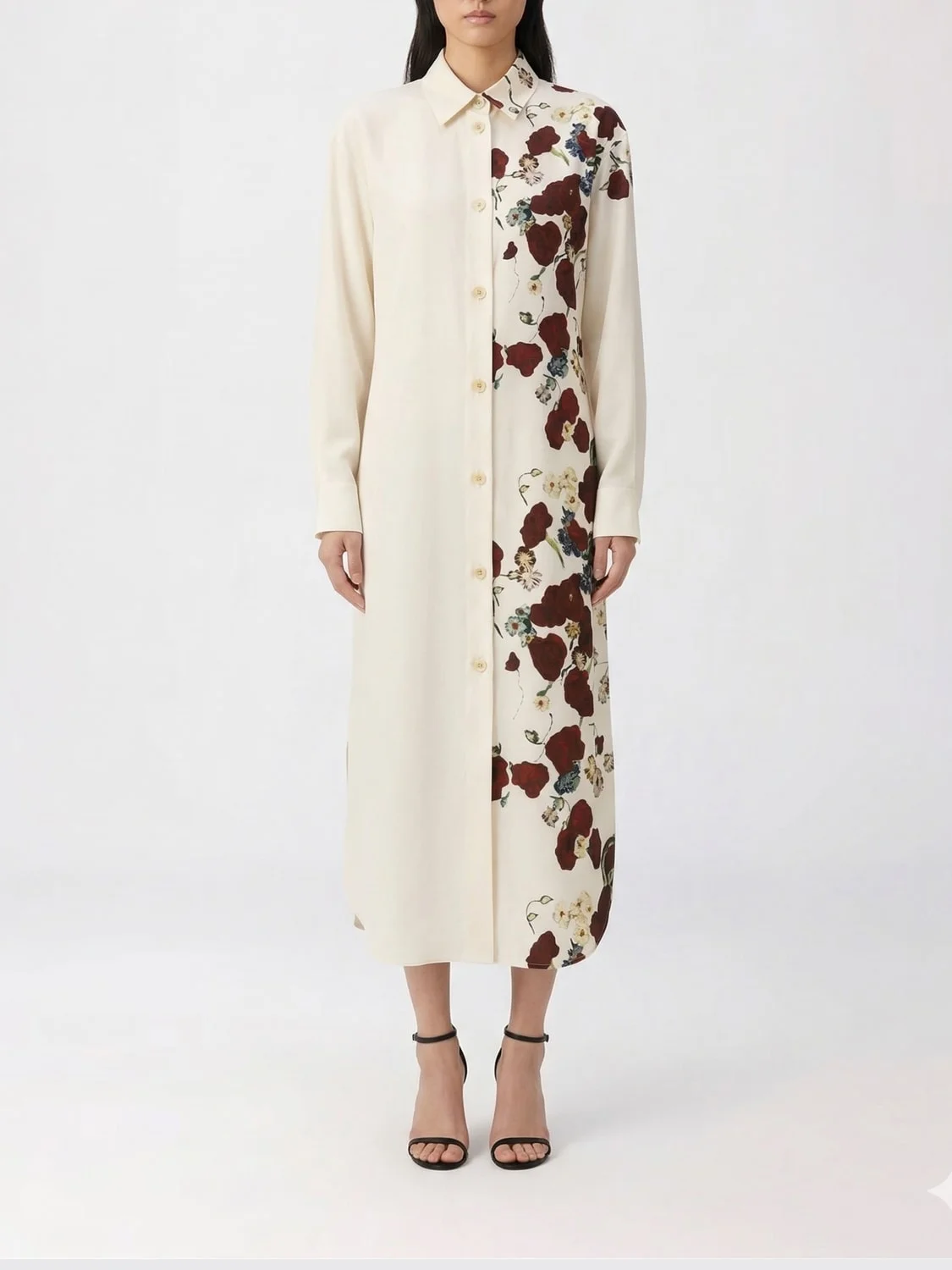 Gloria Floral Cotton-Silk Organza Midi Dress off-white
