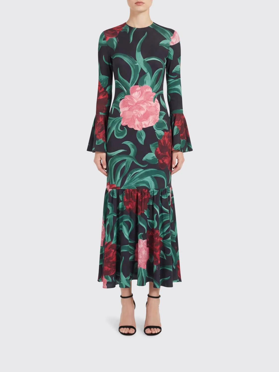 DESCRIPTION - Style: Romantic - Neckline: Crewneck - Shoulders: Regular - Closure: Back closure with zip - Bottom: With straight hemline - Length: Midi dresses - Occasion: Ceremony and cocktail dresses, Morning dresses - Sleeves: Long sleeve dresses - Materials: Stretch viscose - Pattern: Floral DETAILS AND CARE Composition | 92% Viscose 8% Elastane SIZE AND FIT Sizes not available Size and fit Slim fit Designer code: DRE0670JER027PEO05 BL01 Giglio Code: H96523 Designer: La Doublej Collection: Clothing La Doublej Category: Clothing > Dress