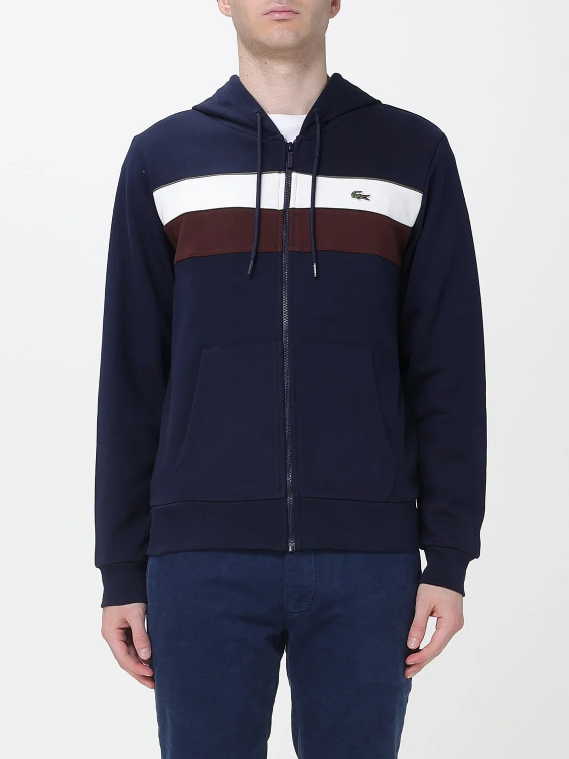 DESCRIPTION - Style: Casual, Sporty - Logo: Contrasting - Hood: With drawstrings - Shoulders: Regular - Sleeves: Long - Closure: With zip - Pockets: America - Bottom: With straight hemline - Model: With hood - Materials: Cotton blend - Pattern: Logo, Stripes DETAILS AND CARE Composition not available SIZE AND FIT Sizes not available Size and fit Regular fit Designer code: SH5913 6WZ Giglio Code: H63352 Designer: Lacoste Collection: Lacoste Men Category: Clothing Lacoste