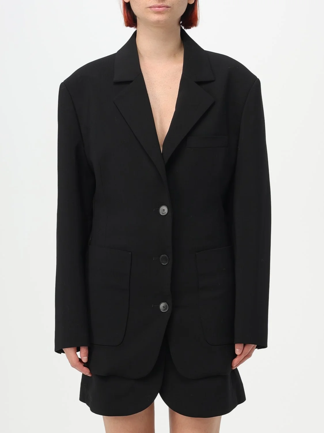 DESCRIPTION - Style: Contemporary, Formal - Model: Single-breasted - Neck: Peak lapels - Neckline: V neckline - Shoulders: Oversize, Relaxed - Sleeves: Long - Closure: 3-button - Pockets: Patch pocket - Bottom: With straight hemline - Length: Short jackets - Materials: Virgin wool - Pattern: Plain-colored DETAILS AND CARE Composition 04% ELASTERELL 93% VIRGIN WOOL 03% POLYAMIDE SIZE AND FIT Sizes not available Size and fit Oversize Designer code: RWJA00245801H23 10 Giglio Code: E85137 Designer: Lanvin Collection: Lanvin Woman Category: Clothing Lanvin
