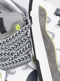DESCRIPTION - Logo: Engraved - Details: With back tab - Lining: Mesh, With logo - Model: Lace up - Toe: Round - Ankle: Low top, Padded - Sole: Rubber - Materials: Smooth calfskin, Suede calfskin - Pattern: Abstract DETAILS AND CARE Composition 76% Bos Taurus 24% Polyester SIZE AND FIT Sizes not available Designer code: FUSKDK12BICOE25 0013 Giglio Code: H48661 Designer: Lanvin Collection: Lanvin Men Category: Shoes Lanvin