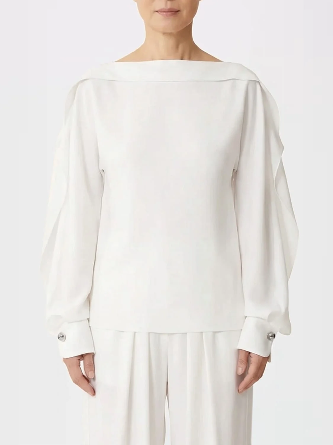 DESCRIPTION - Style: Elegant - Details: With ruffles - Neckline: Straight - Shoulders: Regular - Bottom: With straight hemline - Sleeves: Long sleeve tops - Materials: Viscose blend - Pattern: Embroidery, Plain-colored DETAILS AND CARE Composition 70% Viscose 30% Silk SIZE AND FIT Sizes not available Size and fit Regular fit Designer code: RWTO00106253P26 021 Giglio Code: I11584 Designer: Lanvin Collection: Clothing Lanvin Category: Clothing > Top
