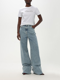 DESCRIPTION - Style: Contemporary - Details: With beads - Model: Crewneck - Neckline: Crewneck - Shoulders: Regular - Sleeves: Short - Bottom: With straight hemline - Logo: With logo - Materials: Cotton - Pattern: undefined DETAILS AND CARE Composition 100% cotton SIZE AND FIT Sizes not available Size and fit Slim fit Designer code: RWTS9030J176P25 01 Giglio Code: G78543 Designer: Lanvin Collection: Lanvin Woman Category: Clothing Lanvin