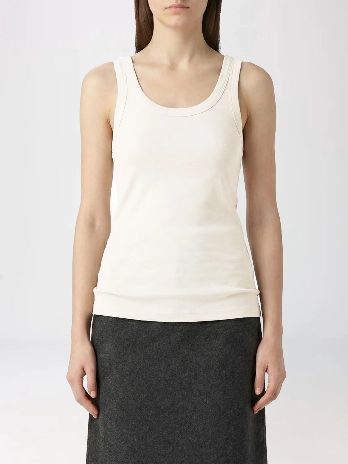DESCRIPTION - Style: Basic, Minimal - Neckline: U neckline - Shoulders: Regular - Bottom: With straight hemline - Sleeves: Off-the-shoulder tops - Materials: Cotton - Pattern: Plain-colored DETAILS AND CARE Composition _100 % CO SIZE AND FIT Sizes not available Size and fit Slim fit Designer code: TS0001LJ1016 WH048 Giglio Code: H97752 Designer: Lemaire Collection: Clothing Lemaire Category: Clothing > Top