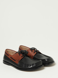 DESCRIPTION - Logo: Engraved, Lettering - Details: With ribbons - Lining: Leather, With logo - Model: Boat - Toe: Round, Raised toe box - Sole: Leather - Materials: Smooth calfskin DETAILS AND CARE Composition Calf leather 100% SIZE AND FIT Sizes not available Designer code: M816S08X01 3979 Giglio Code: H14194 Designer: Loewe Collection: Loewe Men Category: Shoes Loewe