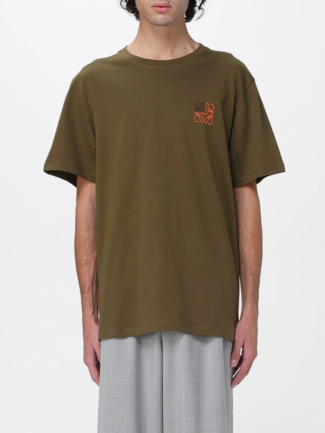 DESCRIPTION - Style: Sporty - Logo: Contrasting, Embroidered - Model: Crewneck - Length: Long - Neckline: Crewneck - Shoulders: Relaxed - Sleeves: Short - Bottom: With straight hemline - Materials: Cotton - Pattern: Logo DETAILS AND CARE Composition not available SIZE AND FIT Sizes not available Size and fit Relaxed fit Designer code: H526Y22X75 4160 Giglio Code: H57290 Designer: Loewe Collection: Loewe Men Category: Clothing Loewe