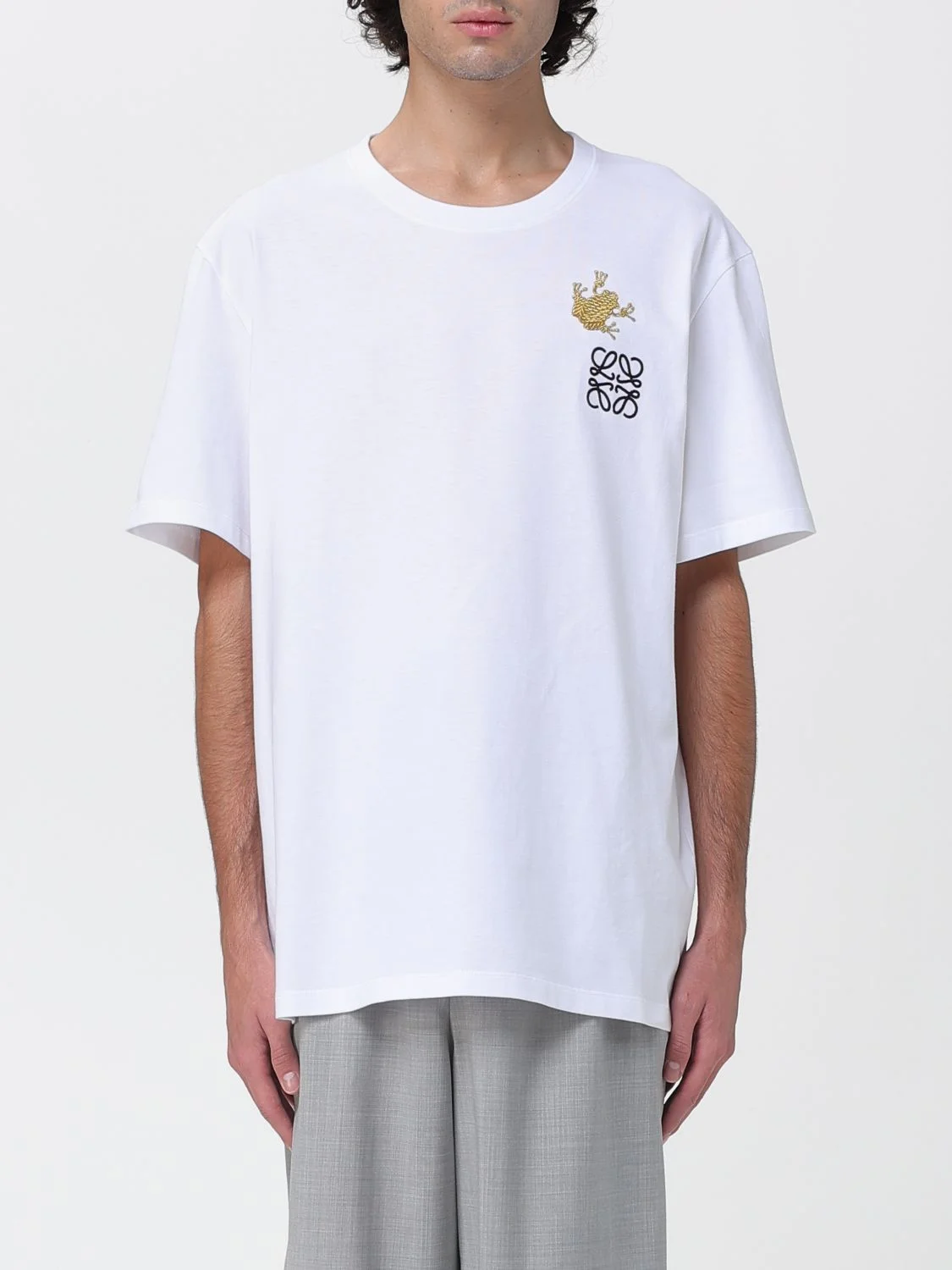 DESCRIPTION - Style: Sporty - Logo: Contrasting, Embroidered - Model: Crewneck - Length: Long - Neckline: Crewneck - Shoulders: Relaxed - Sleeves: Short - Bottom: With straight hemline - Materials: Cotton - Pattern: Logo DETAILS AND CARE Composition not available SIZE AND FIT Sizes not available Size and fit Relaxed fit Designer code: H526Y22J74 2016 Giglio Code: H55906 Designer: Loewe Collection: Loewe Men Category: Clothing Loewe
