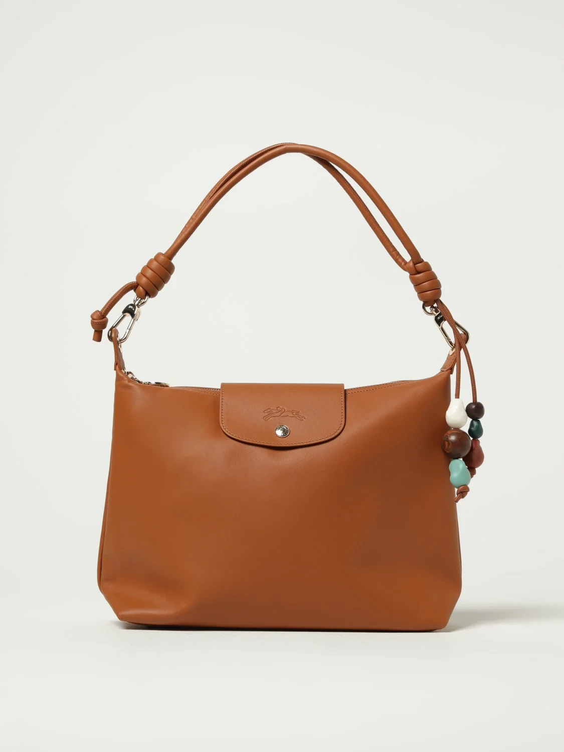 DESCRIPTION - Logo: Engraved - Details: With charms - Lining: Logo fabric - Model: Hobo - Closure: With tab and press stud - Shape: Rectangular - Handle: With knot - Materials: Cowhide - Pattern: Plain-colored DETAILS AND CARE Composition 100 AF SIZE AND FIT Sizes Width : 31,5 cm Height: 25 cm Depth: 11 cm Designer code: 10189 HGV M19 Giglio Code: 430940 Designer: Longchamp Collection: Longchamp Woman Category: Bags Longchamp