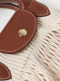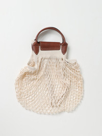 DESCRIPTION - Style: Vintage - Logo: Engraved - Lining: Unlined - Model: Hand, Pierced - Closure: With tab and press stud - Shape: Round - Handle: Double - Materials: Fishnet nylon, Mesh , Grained calfskin - Pattern: Plain-colored DETAILS AND CARE Composition 100 AF SIZE AND FIT Sizes Width : 38 cm Height: 31 cm Handle height: 6 cm Designer code: 10121HVH 037 Giglio Code: 421253 Designer: Longchamp Collection: Longchamp Woman Category: Bags Longchamp