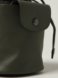 DESCRIPTION - Logo: Engraved - Lining: Logo fabric - Model: Bucket - Closure: With drawstrings - Shape: Rectangular - Shoulder strap: Adjustable and removable - Pockets: Flap with button - Materials: Cowhide - Pattern: Plain-colored DETAILS AND CARE Composition 100 AF SIZE AND FIT Sizes Width : 13,5 cm Height: 19 cm Depth: 12 cm Designer code: 10317 987 549 Giglio Code: 430936 Designer: Longchamp Collection: Longchamp Woman Category: Bags Longchamp