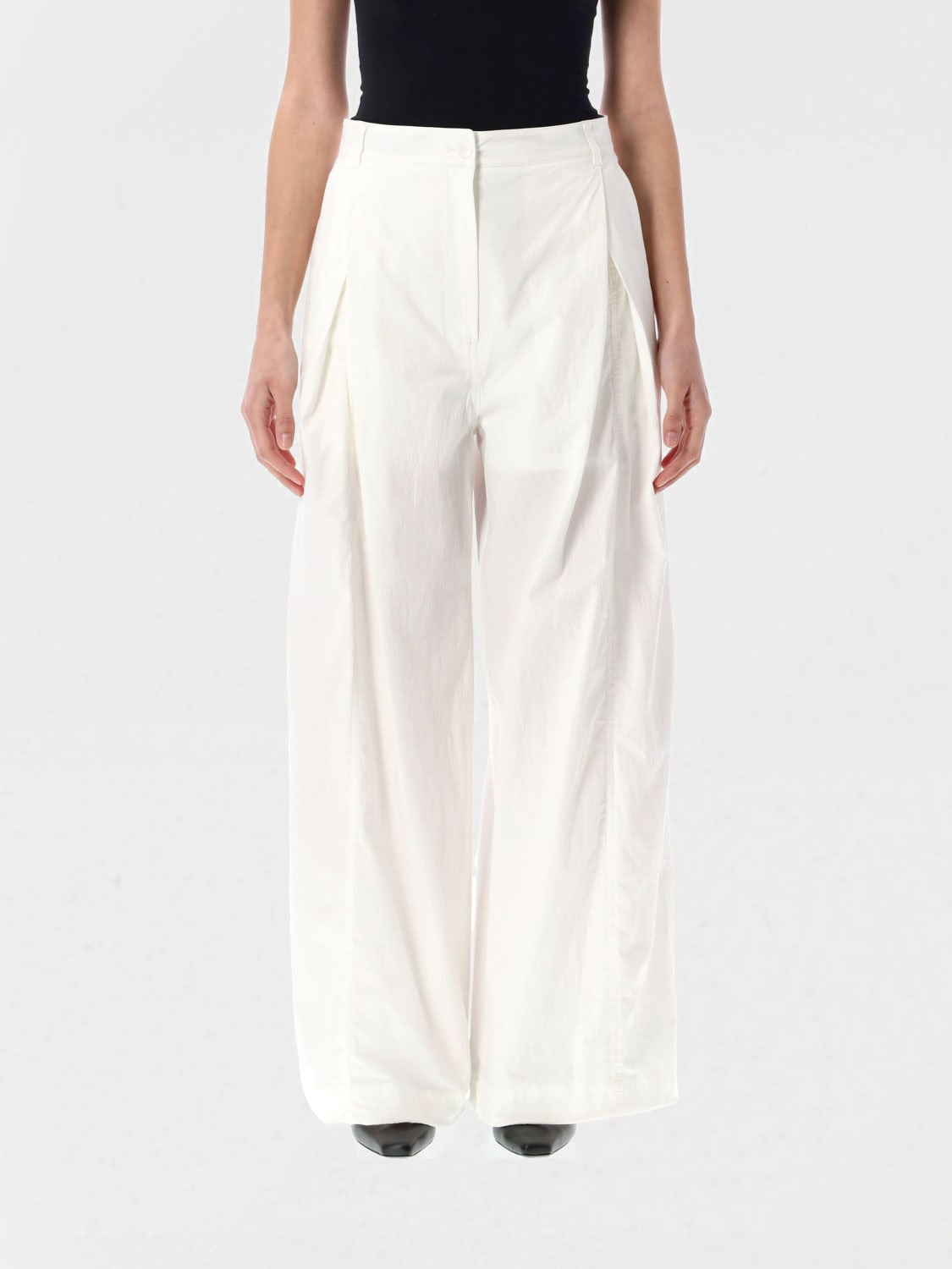 DESCRIPTION - Style: Minimal - Pockets: Back slit with button - Waist: High waist - Bottom: With straight hemline - Closure: With button and zip - Materials: Cotton blend - Pattern: Plain-colored DETAILS AND CARE Composition 98% cotton 2% polyurethane SIZE AND FIT Sizes not available Size and fit Regular fit Designer code: LW251PT17WH 0053 Giglio Code: G96396 Designer: Low Classic Collection: Low Classic Woman Category: Clothing Low Classic