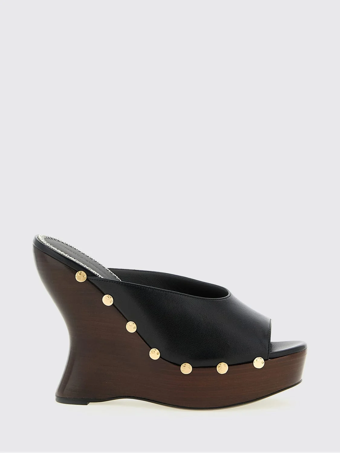 DESCRIPTION - Style: Contemporary - Details: With studs - Lining: With wood midsole - Model: Wedge - Toe: Open, Round - Ankle: With strap - Sole: Leather, With platform - Occasion: Morning - Heel: Tacco alto scultoreo - Materials: Nappa calfskin - Pattern: Embroidery, Plain-colored DETAILS AND CARE Composition 100% calfskin leather (Bos Taurus) SIZE AND FIT Sizes not available Designer code: 501426 BLACK Giglio Code: H97020 Designer: Magda Butrym Collection: Magda Butrym Woman Category: Shoes Magda Butrym