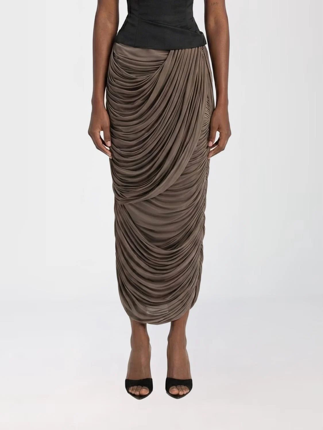 Descrizione Skirt woman Magda Butrym DETAILS AND CARE Composition GENERAL CUPRO 92 - GENERAL ELASTANE 8 - SIZE AND FIT Sizes not available Designer code: 302426 BROWN Giglio Code: H98293 Designer: Magda Butrym Collection: Magda Butrym Woman Category: Clothing Magda Butrym