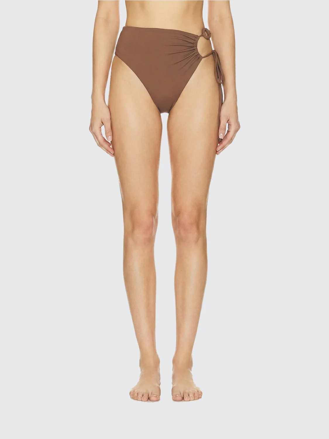 High-waist swim bottom with ring detail in brown