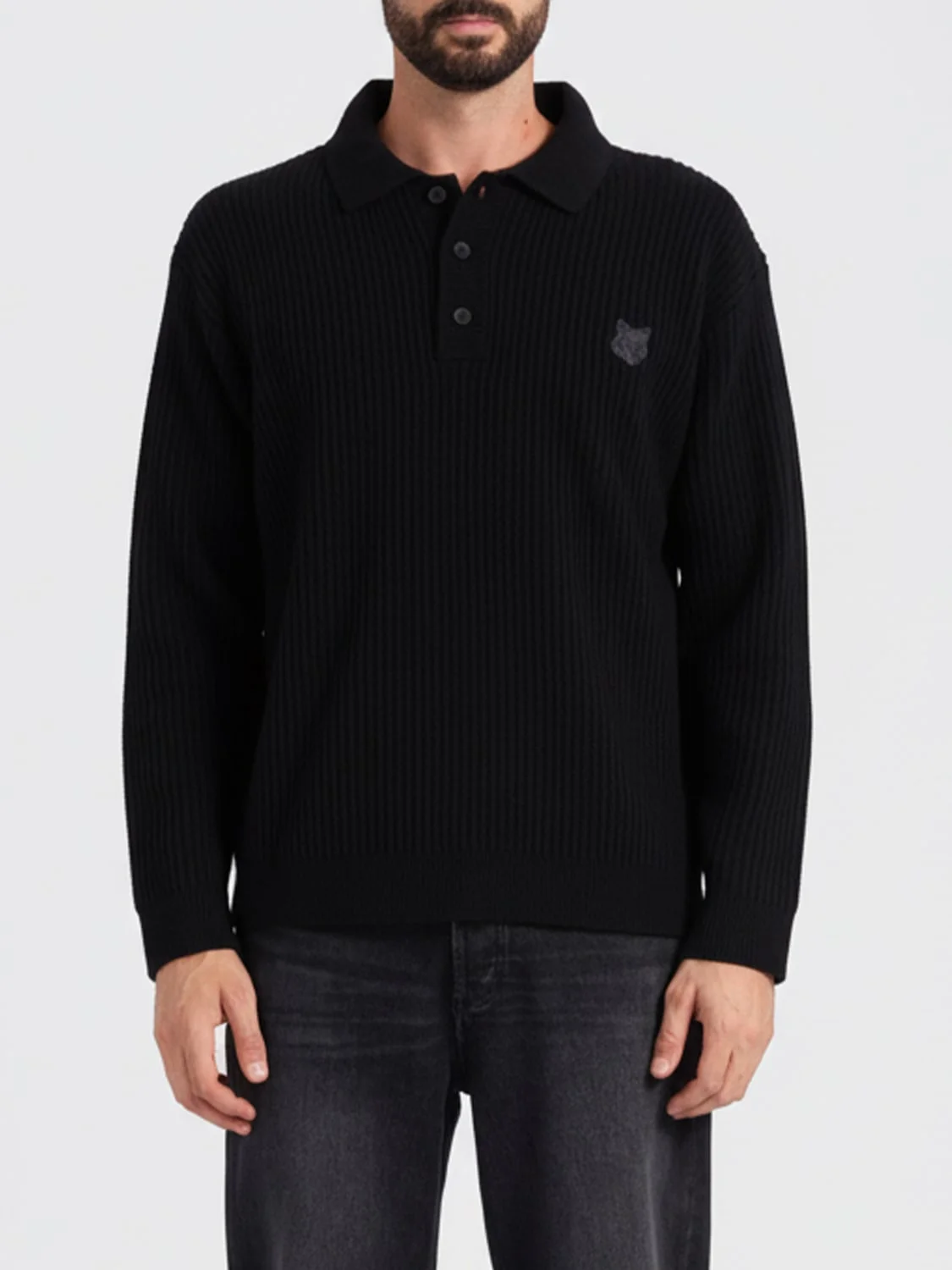 FOX HEAD WOOL RIBBED POLO JUMPER