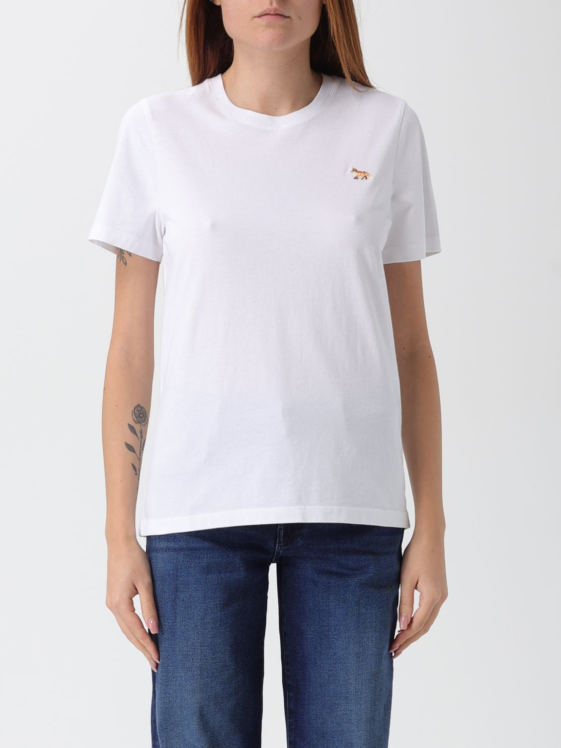 DESCRIPTION - Style: Casual, Sporty - Logo: Chillax Fox, Embroidered - Model: Crewneck - Neckline: Crewneck - Shoulders: Regular - Sleeves: Short - Bottom: With straight hemline - Materials: Cotton - Pattern: Logo DETAILS AND CARE Composition not available SIZE AND FIT Sizes not available Size and fit Regular fit Designer code: PW00115KJ7026 P100 Giglio Code: H48677 Designer: Maison Kitsune Collection: Maison Kitsune Woman Category: Clothing Maison Kitsune