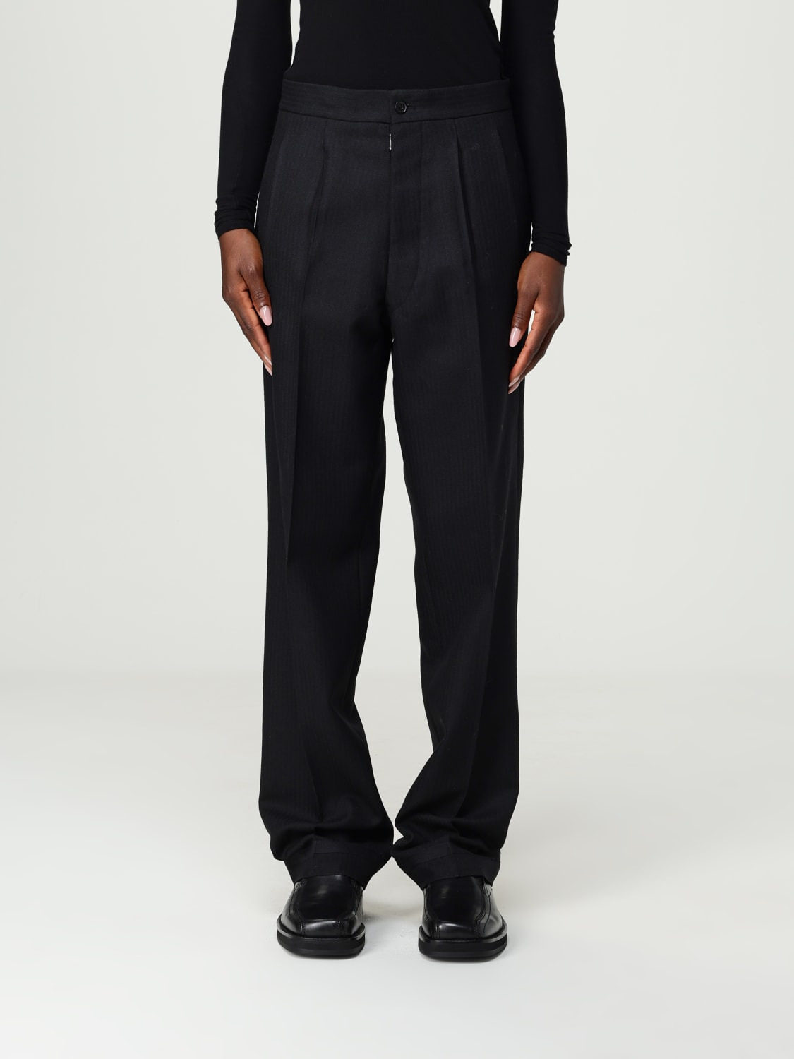 DESCRIPTION - Style: Minimal - Logo: Maison Margiela Four Stitches - Pockets: America - Bottom: With straight hemline - Closure: With button and zip - Waist: High waist - Materials: Virgin wool - Pattern: Plain-colored DETAILS AND CARE Composition GENERAL WOOL 100 - SIZE AND FIT Sizes not available Size and fit Regular fit Designer code: SI0KA0005S60307 900 Giglio Code: H23106 Designer: Maison Margiela Collection: Maison Margiela Woman Category: Clothing Maison Margiela