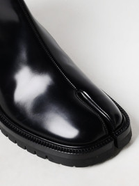DESCRIPTION - Logo: Back, Maison Margiela White Stitch - Lining: With laminated logo - Model: Slip - Shaft: Low - Sole: Rubber - Toe: Tabi - Ankle: Stretch - Materials: Brushed calfskin - Pattern: Plain-colored DETAILS AND CARE Composition 100% Calf Leather SIZE AND FIT Sizes not available Designer code: S57WU0275P3827 H8396 Giglio Code: F81446 Designer: Maison Margiela Collection: Maison Margiela Men Category: Shoes Maison Margiela