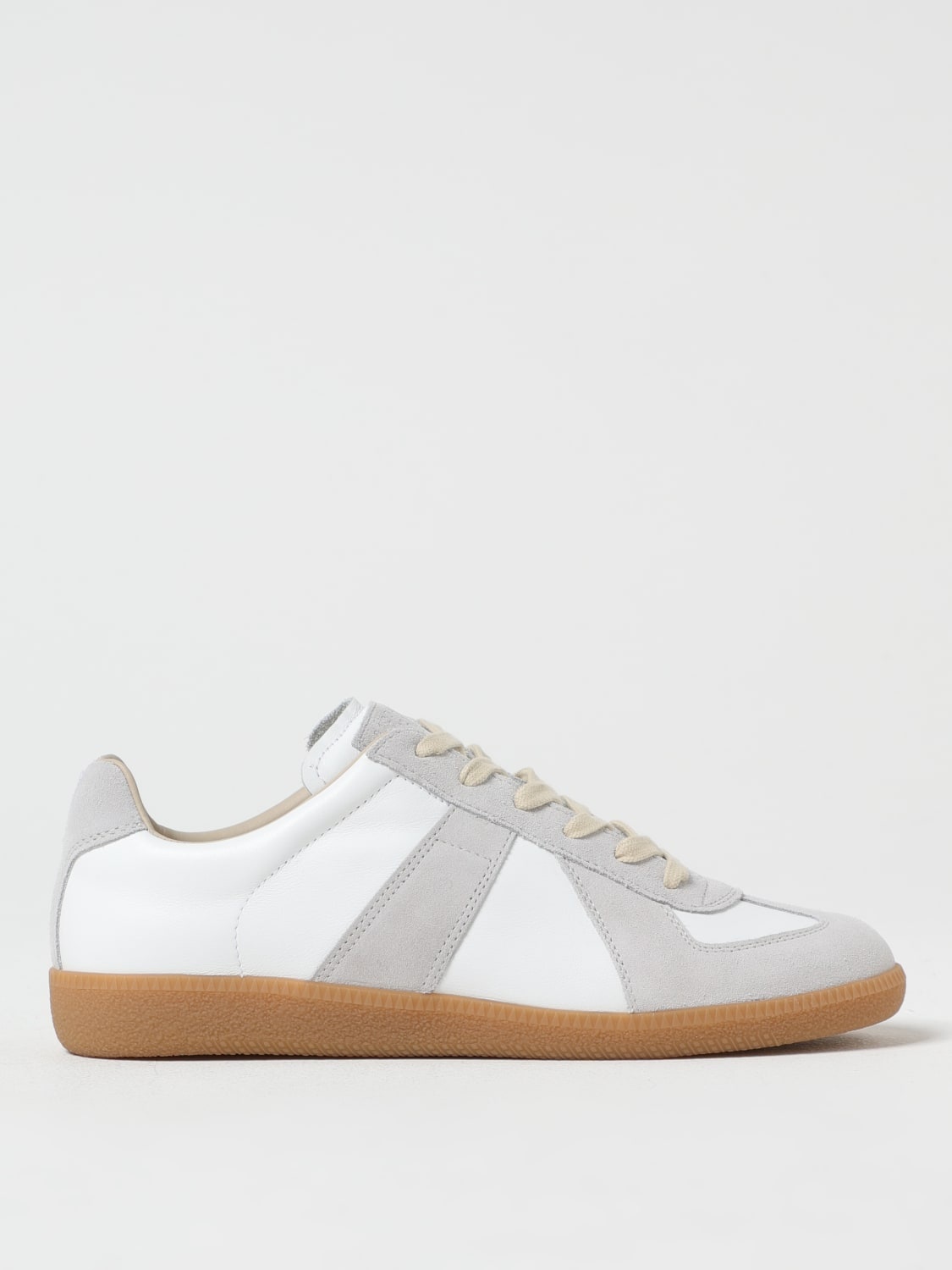 DESCRIPTION - Logo: Back, Embroidered, Maison Margiela White Stitch - Lining: Leather, With logo, Canvas - Model: Lace up - Toe: Round - Ankle: Low top, Padded - Sole: Rubber - Materials: Suede calfskin, Smooth calfskin DETAILS AND CARE Composition Calf Leather | 100% Calf Leather SIZE AND FIT Sizes not available Designer code: S58WS0109P1895 T1016 Giglio Code: G44746 Designer: Maison Margiela Collection: Maison Margiela Woman Category: Shoes Maison Margiela