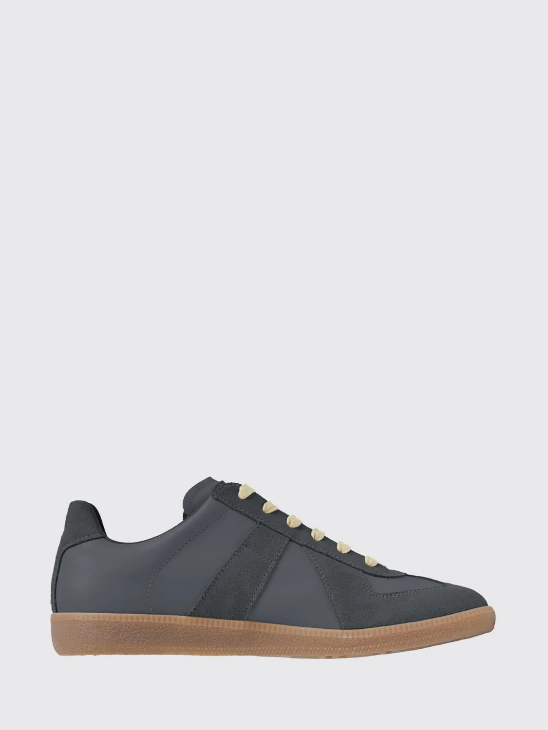DESCRIPTION - Style: Casual - Logo: Engraved, Maison Margiela numbers - Details: With stretch details - Lining: Leather, With logo - Model: Lace up - Toe: Round - Ankle: Low top, Padded - Sole: Rubber - Occasion: Morning - Materials: Bovine suede, Smooth cowhide - Pattern: Bicolor DETAILS AND CARE Composition Tomaia: 100% Pelle Bovina - Contrasto: 100% P SIZE AND FIT Sizes not available Designer code: S57WS0236P1895 T8147 Giglio Code: H88591 Designer: Maison Margiela Collection: Shoes Maison Margiela Category: Shoes > Sneakers