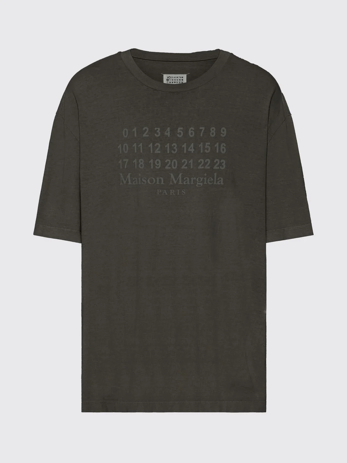 DESCRIPTION - Style: Contemporary, Underground - Model: Crewneck - Logo: Maison Margiela numbers - Neckline: Crewneck - Shoulders: Relaxed - Sleeves: Short - Bottom: With straight hemline - Materials: Cotton - Pattern: Logo DETAILS AND CARE Composition not available SIZE AND FIT Sizes not available Size and fit Regular fit Designer code: S29GC0307S24575 810 Giglio Code: H43831 Designer: Maison Margiela Collection: Maison Margiela Woman Category: Clothing Maison Margiela